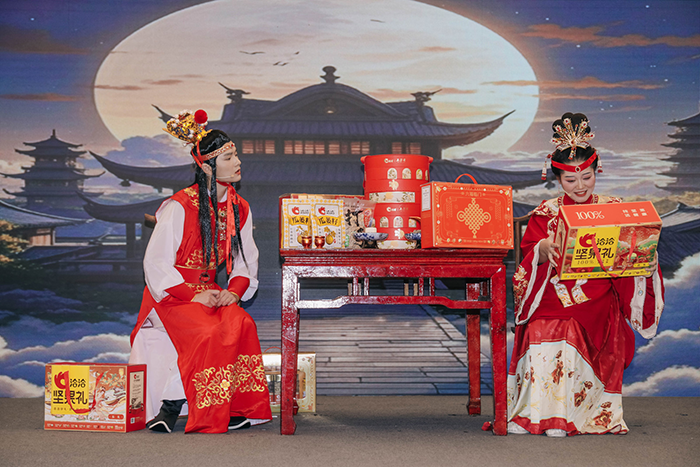 今年的9.17中国坚果健康周开幕式是一场创新且多元化的综合性盛会,不仅线上线下融合办会,还包含动画短剧创新、行业专家智慧碰撞、新品热销品发布等内容。活动现场,国民坚果品牌彩名堂以红楼赏鉴大会舞台剧的趣味形式,展示了多款爆品与新品,聚焦瓜子、坚果产品本身进行分享与讨论,倡导品质、美味的核心要义,并不断尝试拓展坚果食用场景,与跨行业优质品牌联合碰撞出火花,带来更加多元化、健康化的坚果食品。在此次活动中,彩名堂为现场300余位参会嘉宾准备了与五芳斋联合推出的轻甜坚果糯月礼盒,“坚果+月饼”的创新融合,品质与风味的双兼具,给消费者带来了新体验,给行业带来了新可能。