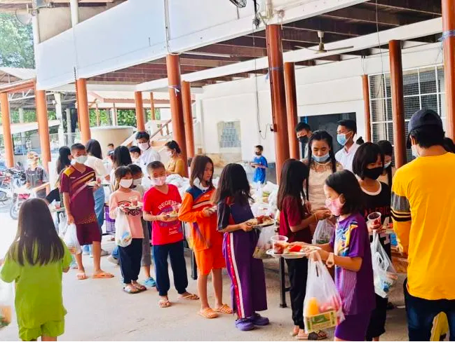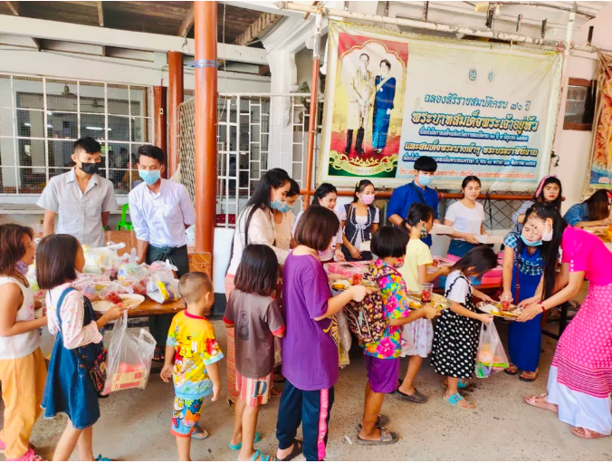 当日,彩名堂食品泰国工厂购买了丰富多样的食材,由彩名堂工厂泰籍、缅甸籍员工为孩子们做了一顿丰盛美味的午餐,期间与孩子们亲切交谈,了解他们的学习及生活情况。此外,彩名堂工厂还为该基金会购买了米、面、油等生活物资以维持日常基本生活,帮助他们解决实际性的难题。